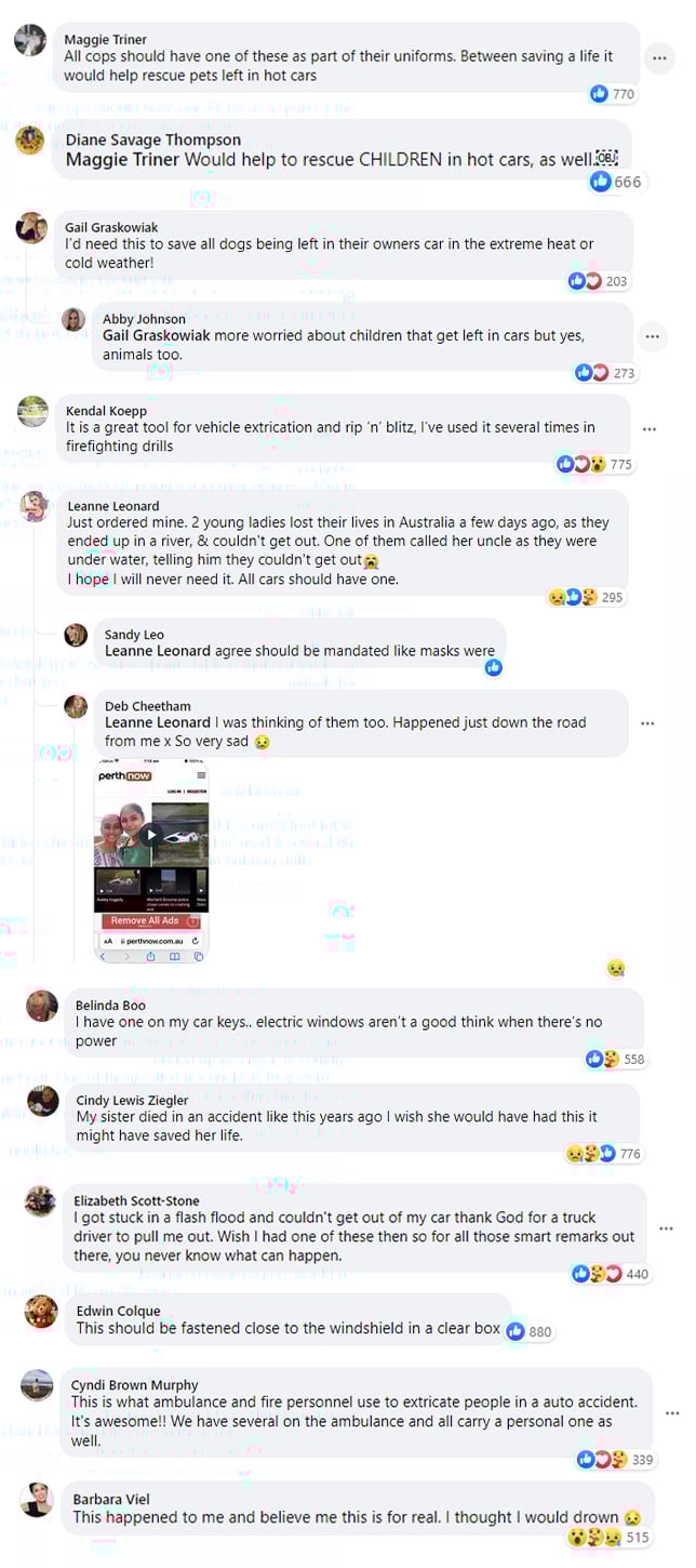 Our seat belt cutter and window breaker save a life on average every 15 days.