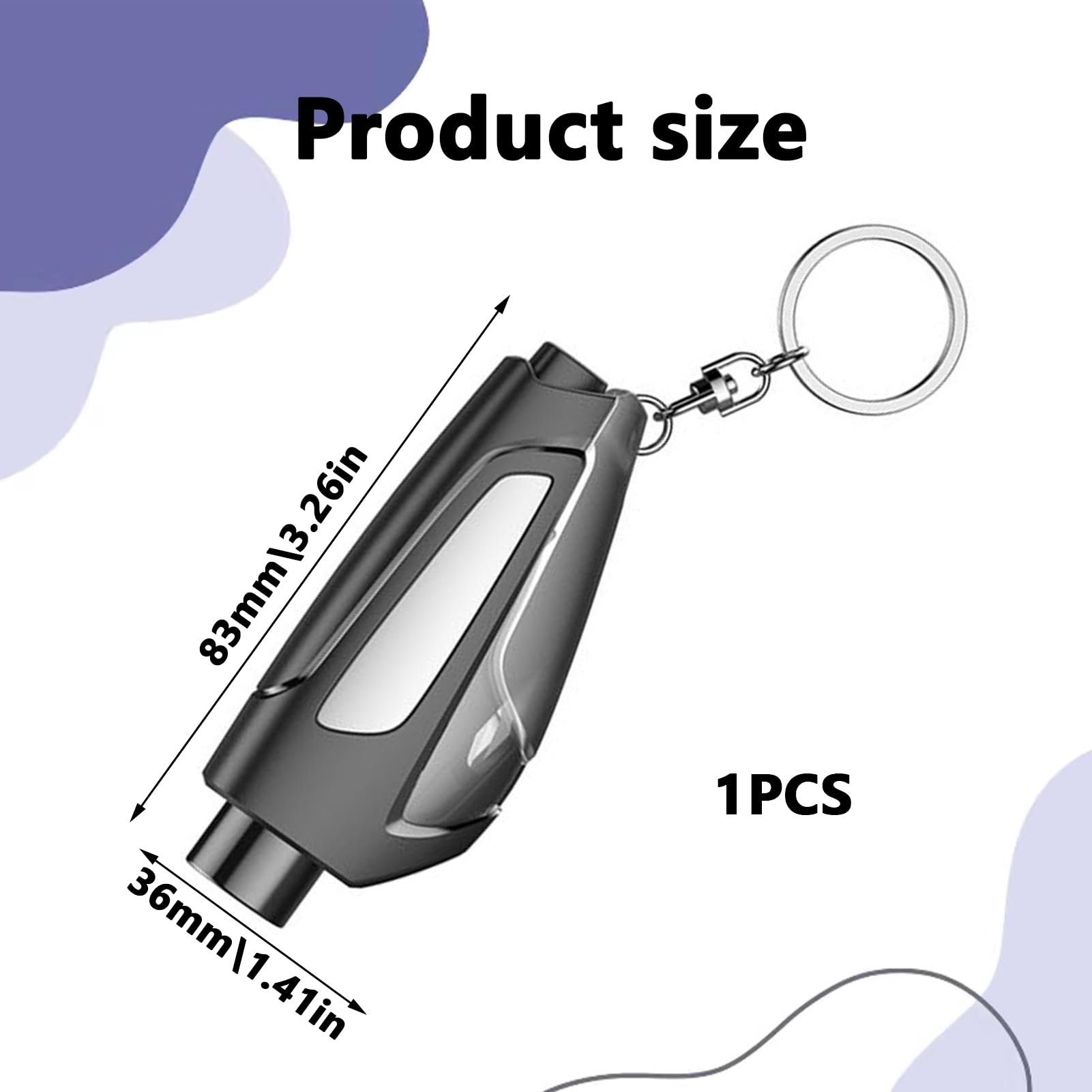 The compact and small car escape tool weighs only 1.94oz (size~3.26x1.41inch), is portable with a keychain design that can be stored and hung in your car/keychain or bag, has bright colors, is easy to spot and access for you to escape from an emergency.